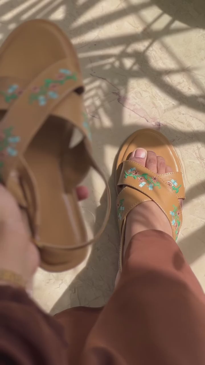 The vibrant floral embellished crossbands and the criss-cross strap with hand embroidery add a unique burst of colors that is both bright and fresh, yet maintains the subtleness.