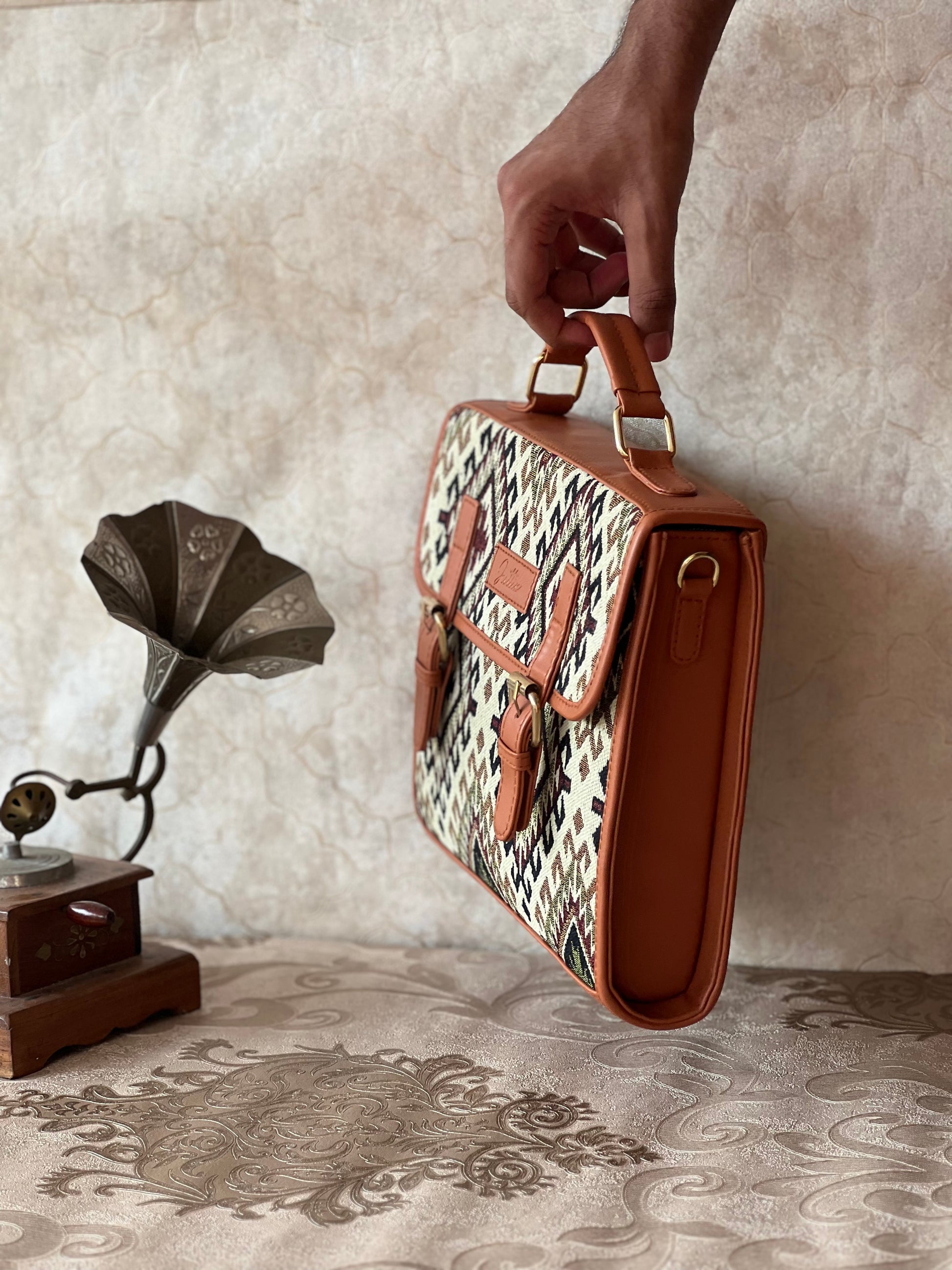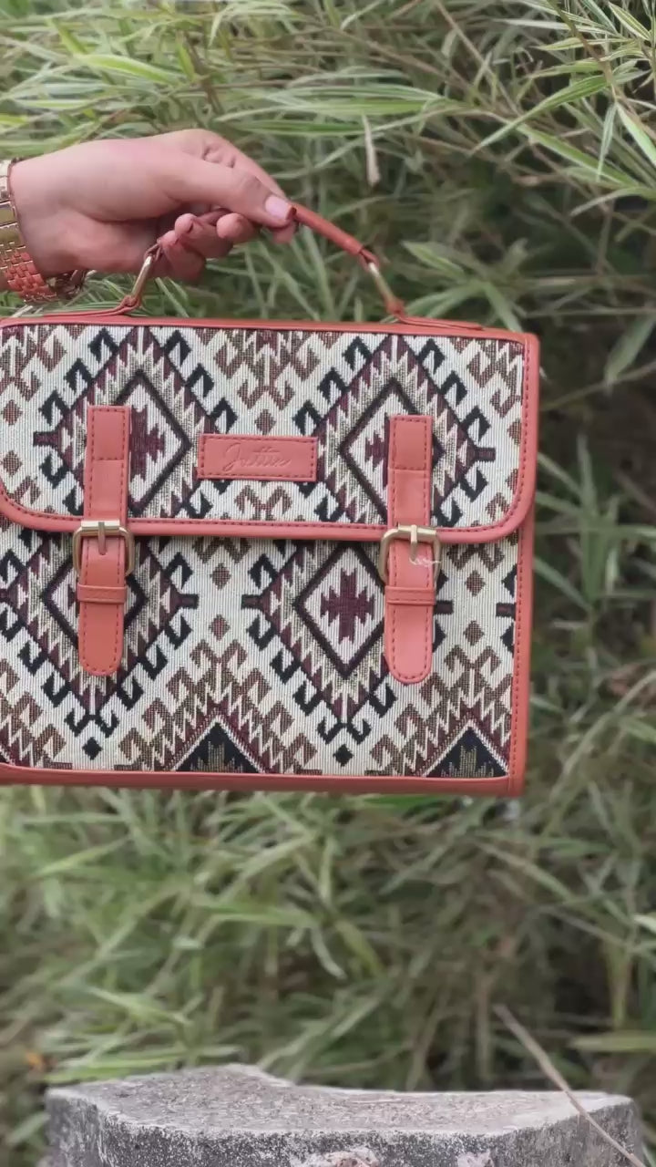 Discover the stunning Newbie Sling Bag - your daily essential! This sling bag is a perfect blend of traditional craftsmanship and modern functionality. Its handwoven design, made from high-quality jacquard cotton cloth and faux leather, showcases intricate patterns and durable construction. The bag features a single, spacious compartment with a magnetic closure for secure and easy access. Inside, it includes a dedicated notepad pocket, along with inner and outer zip pockets for organized storage. The adjustable sling strap, made of faux leather, ensures comfortable carrying, making this bag both stylish and practical. Perfect for daily use, work, casual outings, and travel, the Newbie Sling Bag combines elegance and utility, making it an ideal companion for any occasion.