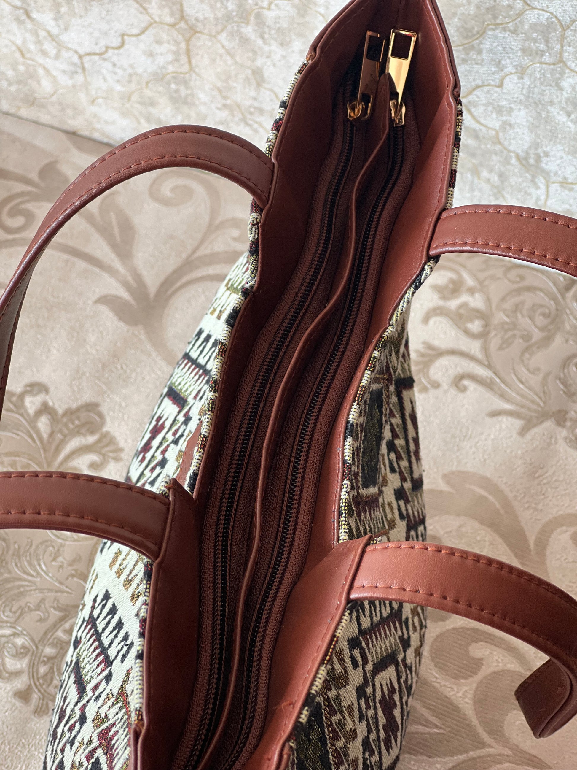 - Handwoven Design with Premium Quality Material: Made from high-quality jacquard cotton cloth and faux leather, showcasing intricate craftsmanship.