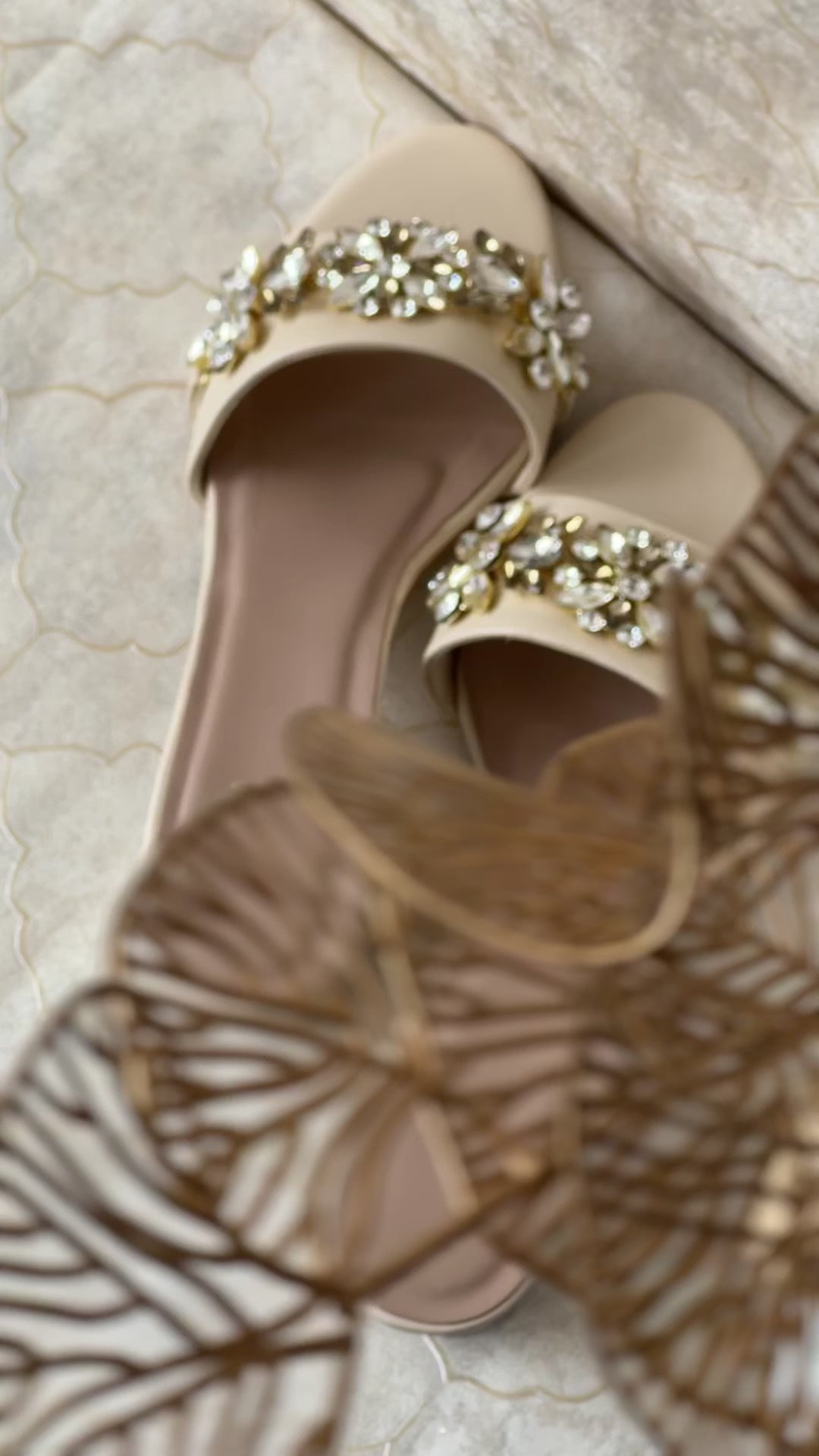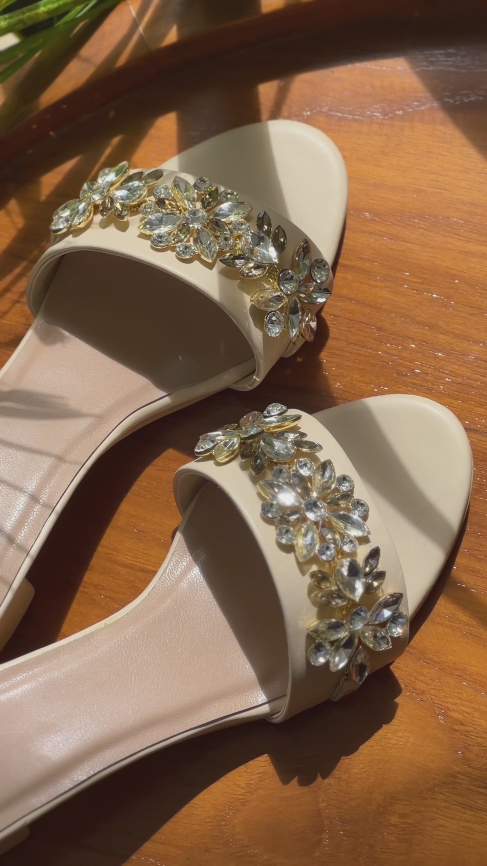 The intricate crystal and diamond stone work embellishments are the highlight of these sandals, showcasing exceptional craftsmanship and luxury.