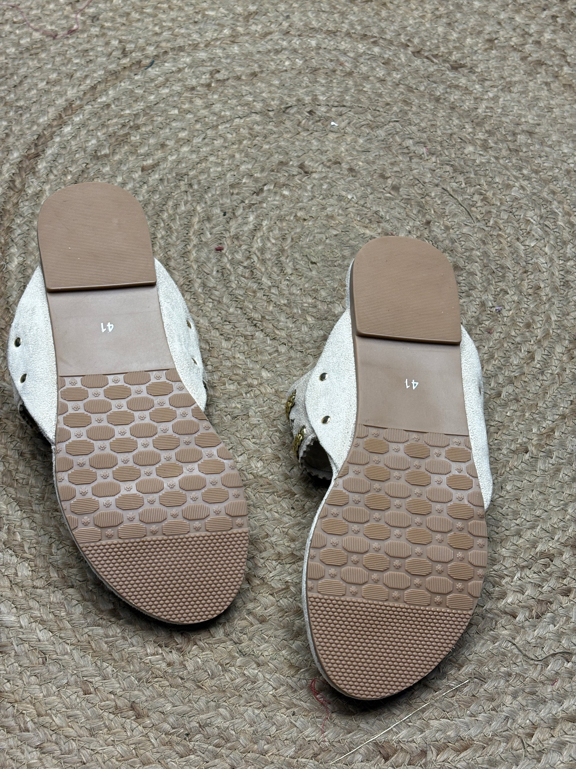 - Footbed: Plush suede off-white base for cushioned comfort.
